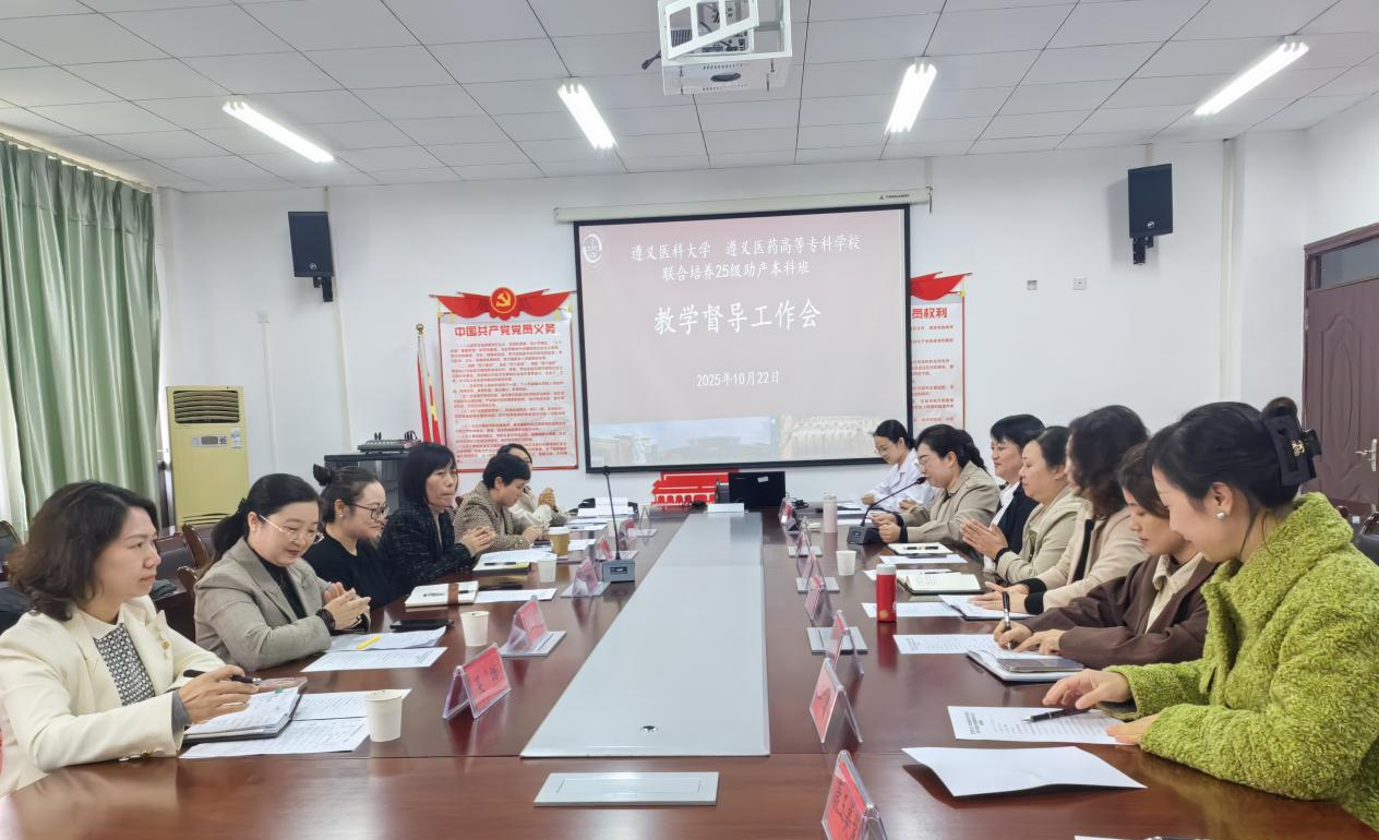 为强化联合培养教学质量管控,提升助产本科专业育人实效,10月22日下午,遵义医科大学与遵义医药高等专科学校在护理系A209会议室联合召开25级助产本科班教学督导工作会。会议由我系教学科研办公室主任安晓倩主持,遵义医科大学及我系相关领导、教研室主任、骨干教师参会。